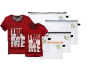 2 vom Trail-Führer getragene T-Shirts, luftdicht in einem Frischhaltebeutel verpackt. Da sie auf dem Boden herum liegen werden, nicht die neusten Ausgeh-T-Shirts aus dem Schrank holen 😉.